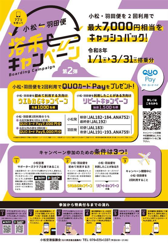 現在実施中の「小松・羽田便搭乗キャンペーン第1弾」に続き、